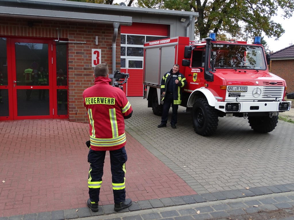(jma) Evendorf. Der YouTuber Andrè Willer („FeuerwehrWilli“) war kürzlich zu Besuch bei der Freiwilligen Feuerwehr Evendorf. Andrè Willer ist selbst Feuerwehrmann und kommt aus der Region Neustadt a.Rbge.. Er hat vor acht Jahren begonnen, als Ausbilder, Schulungsvideos für seine Feuerwehrleute zu drehen und ihnen diese auf YouTube zur Verfügung zu stellen. Mittlerweile ist er deutschlandweit unterwegs, um bei den Feuerwehren seine Videos zu drehen. Auch Österreich und die Schweiz gehörten zu seinem Wirkungsgebiet. In seinen Videos stellt er nicht nur Ausbildungsinhalte, sondern auch Feuerwehrhäuser und Fahrzeuge dar. Etwa 800 Filme stehen bereits zur Verfügung, aber auch in anderen Social-Media-Kanälen ist er aktiv. Nun war er das erste Mal im Landkreis Harburg bei der Feuerwehr Evendorf zu Gast. Die Evendorfer hatten ihn eingeladen, um ihre besonderen Einsatzfahrzeuge in einem Video vorzustellen. Bei den Fahrzeugen handelt es sich um ein neu aufgebautes Tanklöschfahrzeug auf Unimog-Fahrgestell und um einen Schlauchwagen (SWKatS). Nach gut vier Stunden waren die Aufnahmen im „Kasten“. Der Beitrag ist nun online und die Evendorfer freuen sich auf ihren Auftritt bei YouTube.